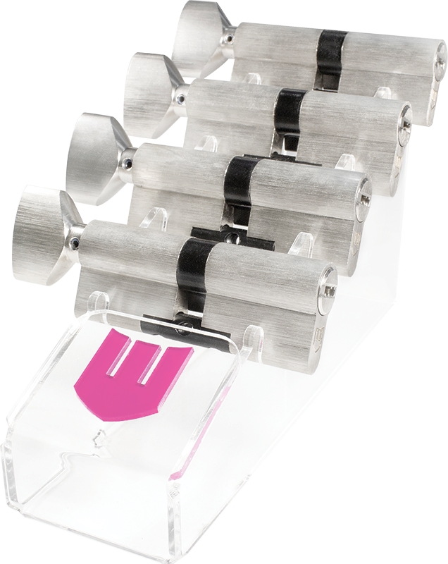 Циліндри з цією функцією дозволяють тимчасово корисуватись і 5 постійними ключами(чорними) і тимчасовими ключами(зеленими). Коли треба закрити доступ зеленим ключам, одноразово і незворотьоно використовується червоний ключ. Далі працюють виключно постійні(чорні) ключі.